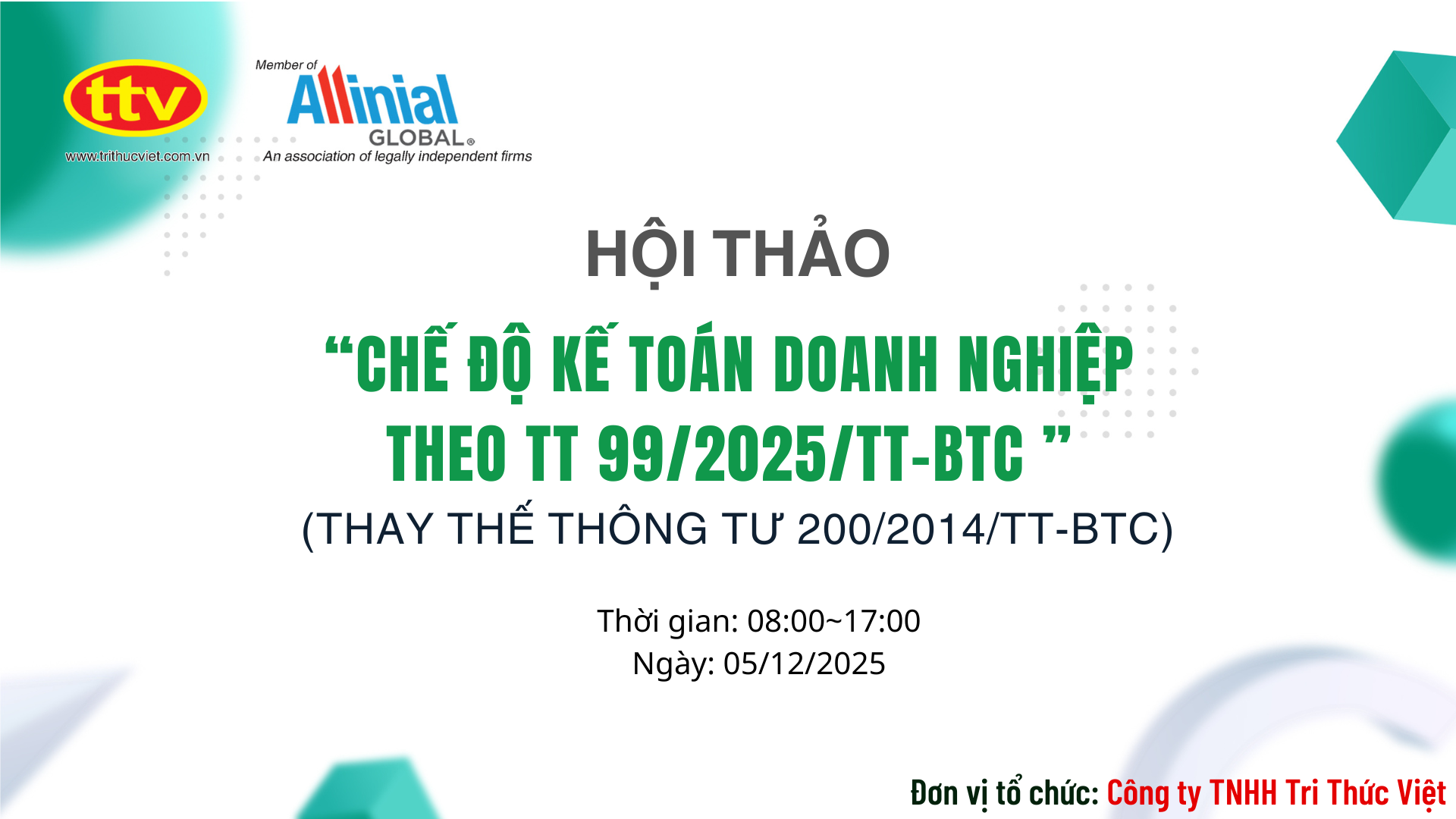 On December 5, 2025 (Friday), Trithucviet Company Limited (TTV) successfully organized the seminar titled “Enterprise Accounting Regime under C